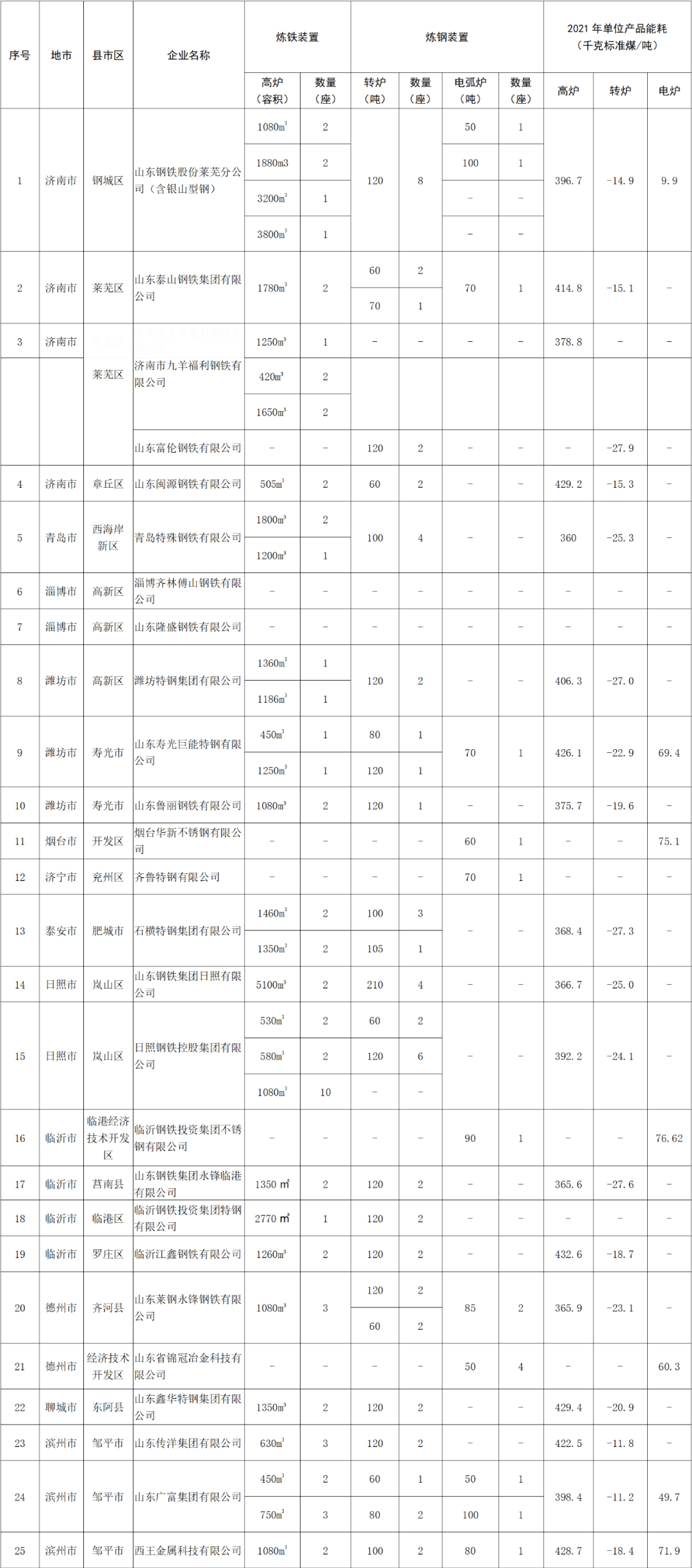 山東省公示鋼鐵、焦化行業(yè)能效水平清單